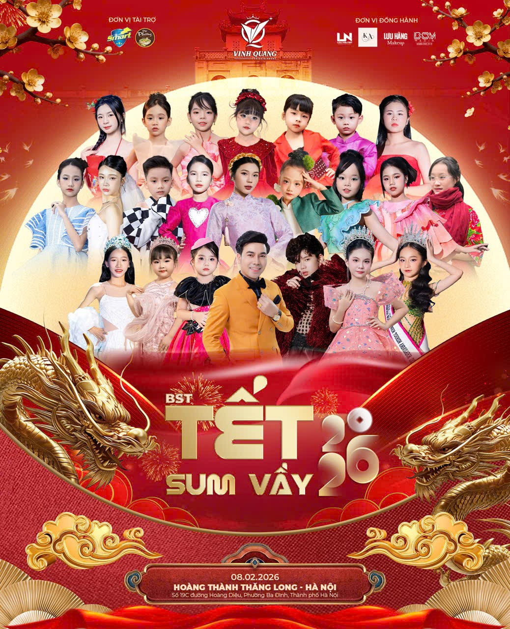 Giữa không gian văn hóa linh thiêng của Hoàng Thành Thăng Long, Đêm hội Xuân Yêu Thương – điểm nhấn của chuỗi sự kiện “Happy Tết – Xuân là hạnh phúc” – sẽ chính thức diễn ra vào ngày 08/02/2026, mang đến bức tranh mùa xuân rực rỡ, ấm áp và giàu cảm xúc. Góp mặt trong chương trình, Vinh Quang Entertainment giới thiệu đến khán giả bộ sưu tập mới mang tên “Tết Sum Vầy” của NTK Vinh Quang, với nhiều dấu ấn đáng mong chờ.