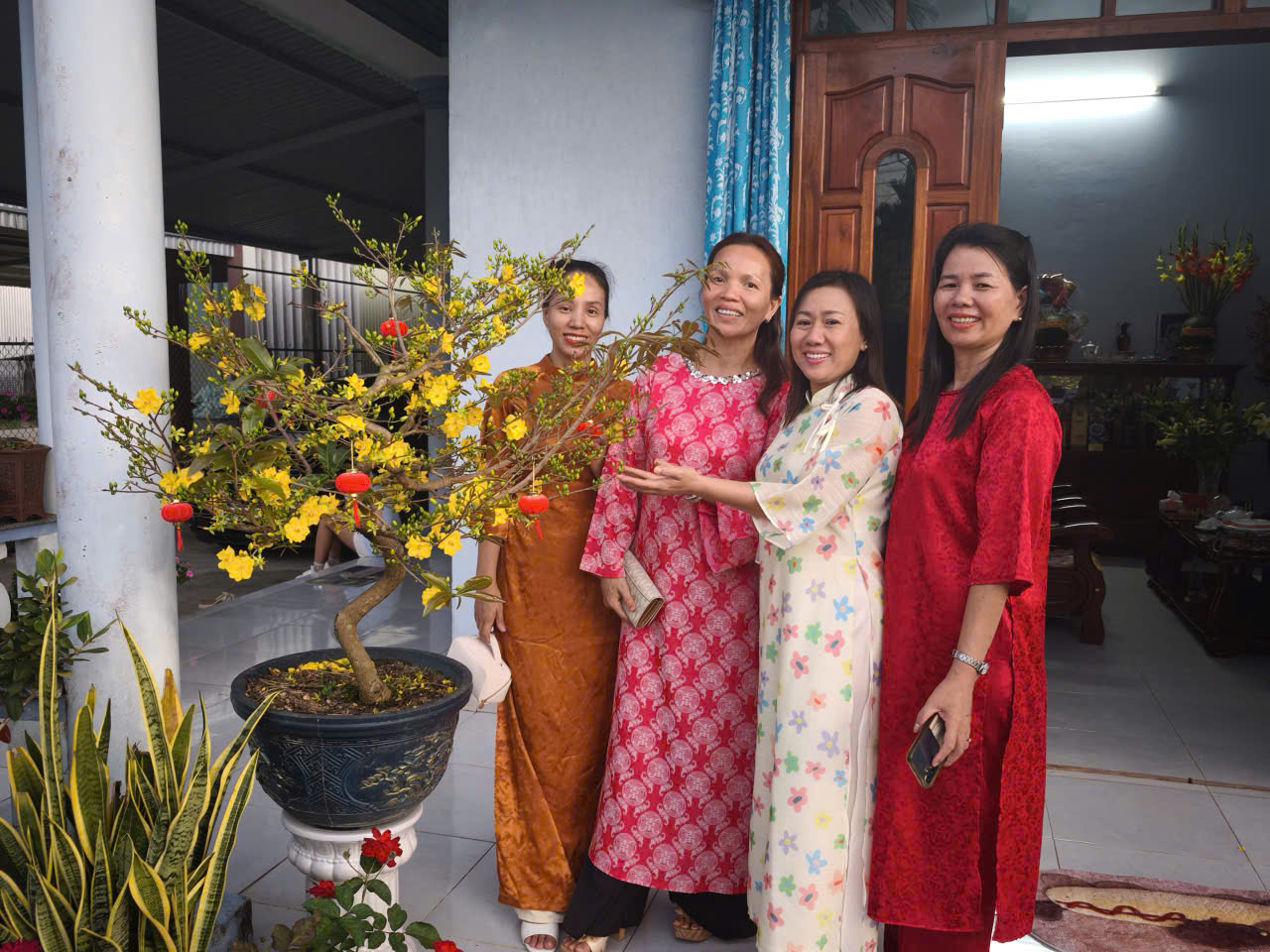 Tết Đoàn viên: Rực sắc áo dài ngày mùng 1 Tết tại vùng quê phường Trà Câu
